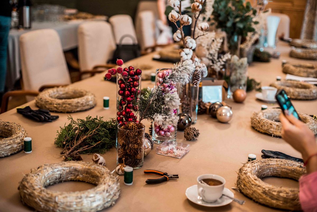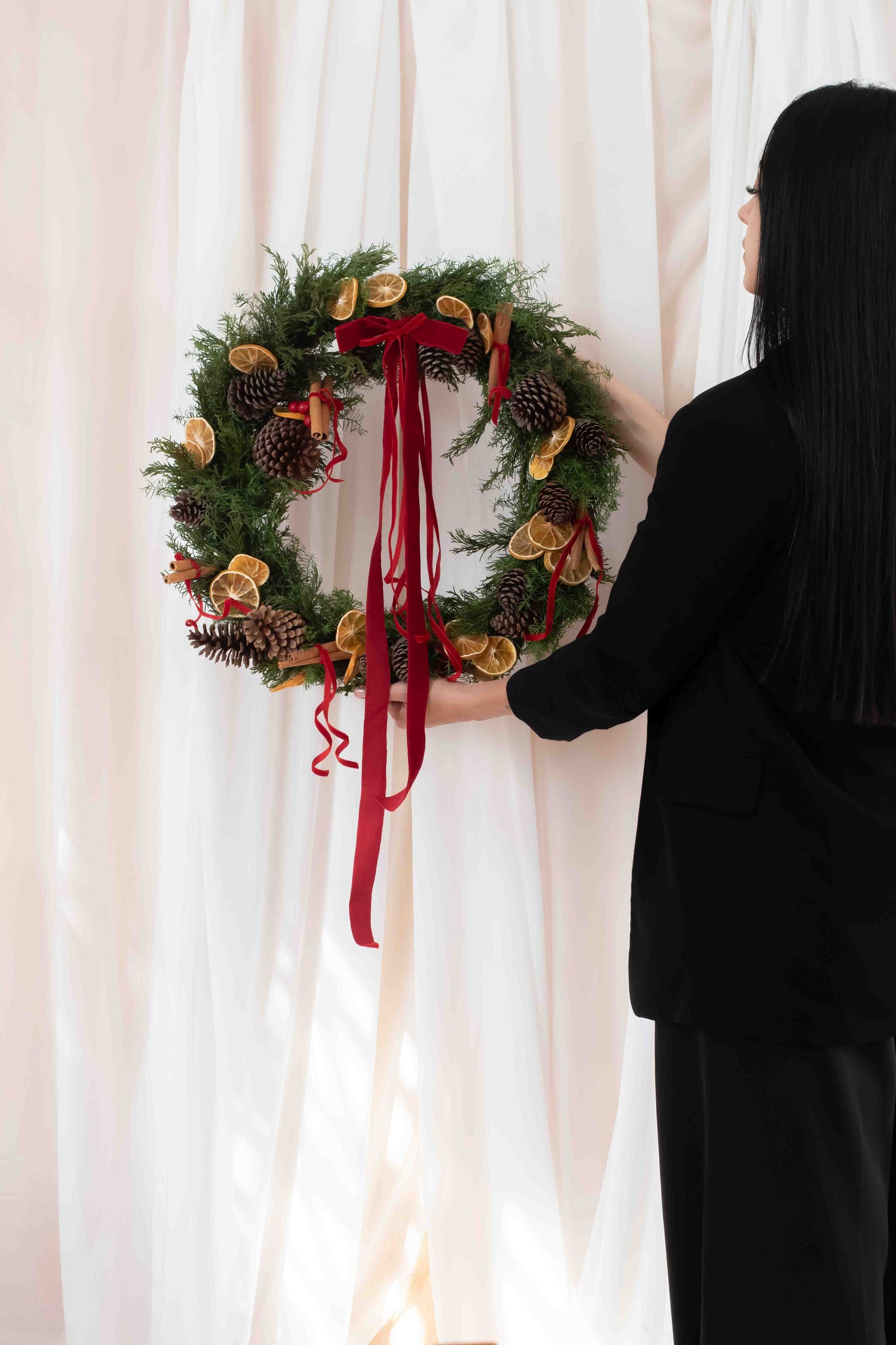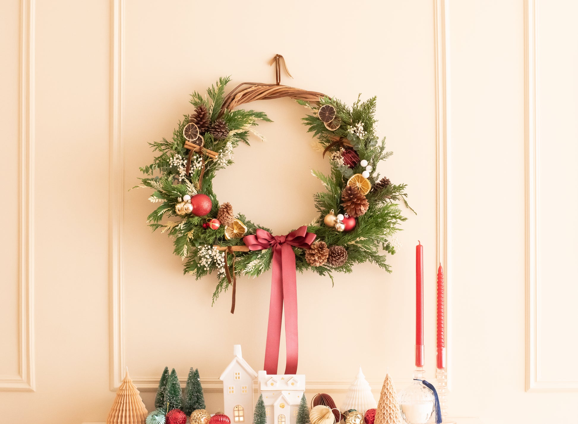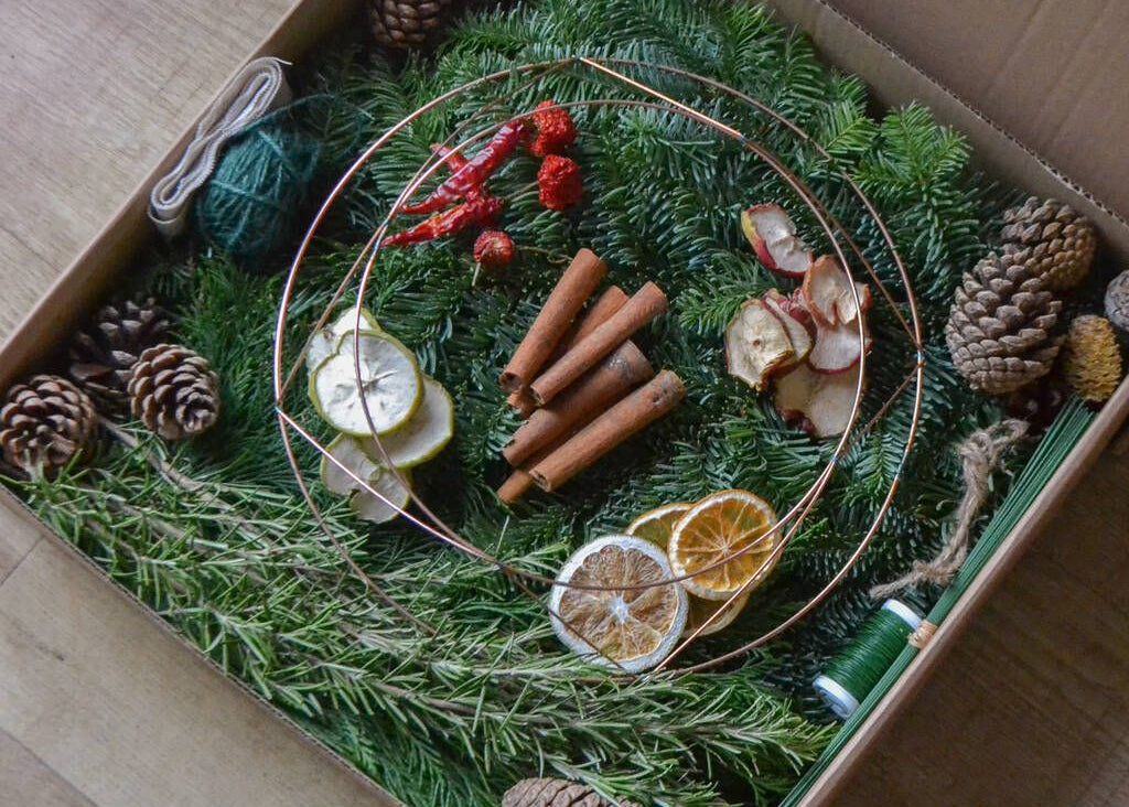 agregaremos cintas, frutas secas, ornamentos y detalles festivos para personalizar cada pieza.
